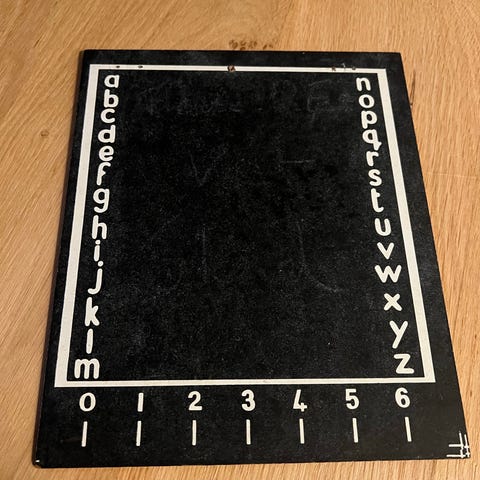 Tavle hvor man kan tegne med kridt på den ene side. Den anden side er whiteboard.