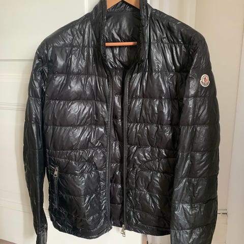 Dunjakke i mørk gråblå farve til herrer, størrelse L. Jakken har 1 indvendig og 2 sidelommer. Meget let og behagelig.