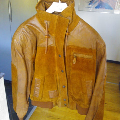 Skind frakke i str 44 med for og pels på hætten