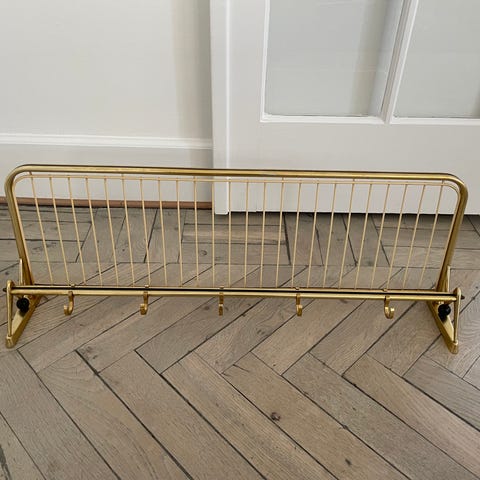 Messingbelagt hattehylde fra 1960'erne med 6 messingkroge (84cm lang)