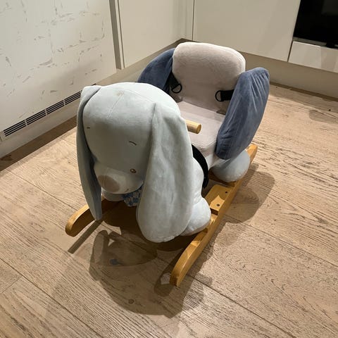 Vippelarve, Softwood, gyngedyr, Gyngelarve fra Softwood, i bomuld og velour i super lækre farver og meget lækker kvalitet. Larven er monteret på en vippe træbund, barnet kan holde fast i dens træfølehorn imens og der er en rangle i næsen som rasler i takt med vipperytmen. Larven kan tages af, så barnet kan lege med den og så man kan bruge træbunden som vippe/balancebræt.