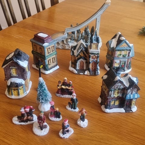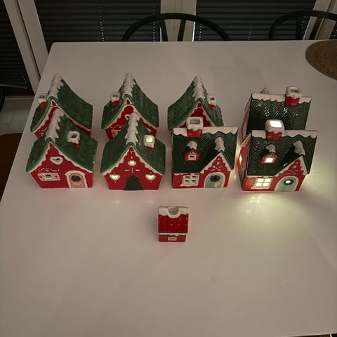 Med mange huse, træer, huler, gadekær og lys i flere huse. Velholdt, og et hvert barns juleønske