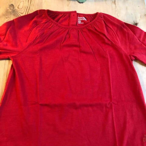 Fin julebluse i flot rød farve, som vi desværre ikke fik brugt den i tide, da min datter havde så mange bluser. Der sidder stadig mærke i.