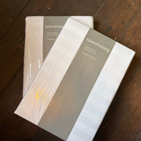 Hvid kappe lagen i hør. Brugt i kort tid. Til en 180 seng. Bemærk at det er kort i den ene ende da det er lavet til en seng med sengegærde. Jeg har dog blot haft den side op mod væggen