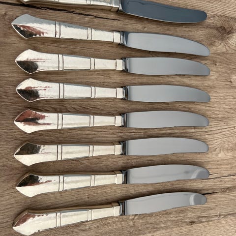 2 knive i bestikket Delt Lilje. Henholdsvis 17 cm. og 18 cm. lange.