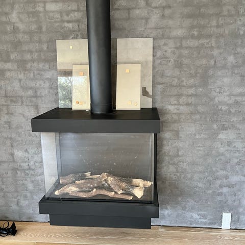Gas pejs med sten i bund sort og glas mål 94x55