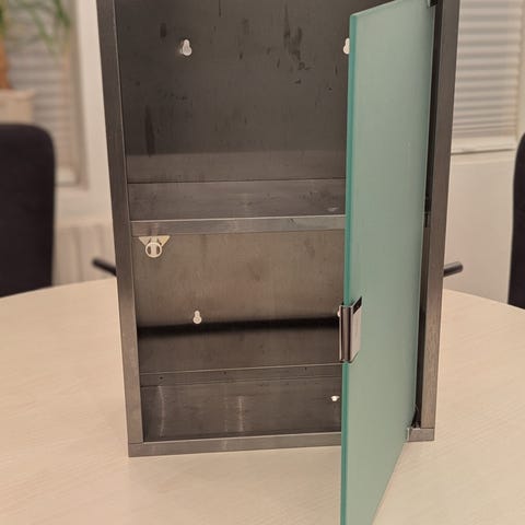 Fine små hylder inde i skabet så det kan rumme en masse dufte eller andre toiletsager.