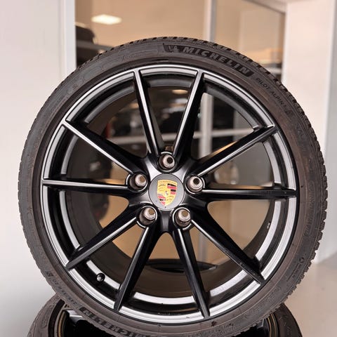 Porsche Sport Techno 20” som har siddet på min Porsche 911 (991.1) 4S. Der er monteret Michelin Pilot Alpin 295/30/R20 og 245/35/R20. Vurderer der er +70% mønster tilbage.