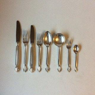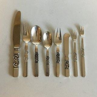 Georg Jensen Konge Sterling Sølv Bestik sæt til 6 personer 42 dele med gamle ...