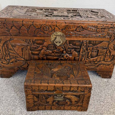 Balinesisk / asiatisk trækasse i mørkt træ