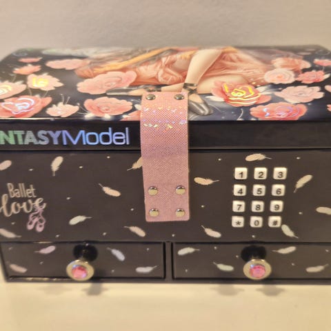 Rigtig sødt smykkeskrin med hunde. Er 11,5 cm højt. 18 cm langt og 13 cm dybt