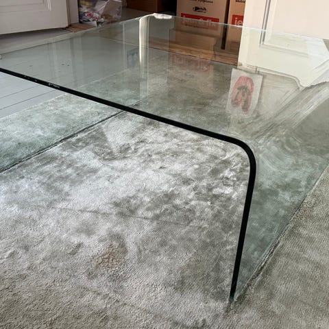 Sælger det her fine glasbord til kun 300 kr. skal bæres ned fra 2 sal. Der er et enkelt hak derfor den lave pris