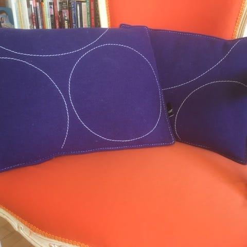 Hay puder med knapdetalje i pink, rosa og grøn. Den rosa pude har en plet (se foto) som jeg ikke ved om kan fjernes. Sælges samlet til 500kr eller 200kr Per styk.