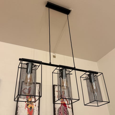 Sort lakeret smuk rå spisebordslampe.
