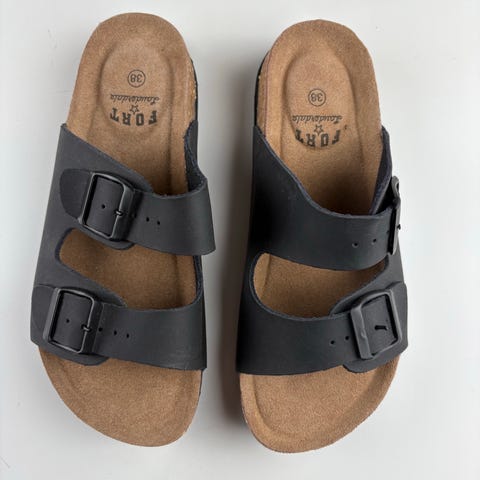 Sandaler i størrelse 37. Sandalerne er brune med justerbar rem og en lukning med spænde. Skoene har en blød sål til komfortabel brug.