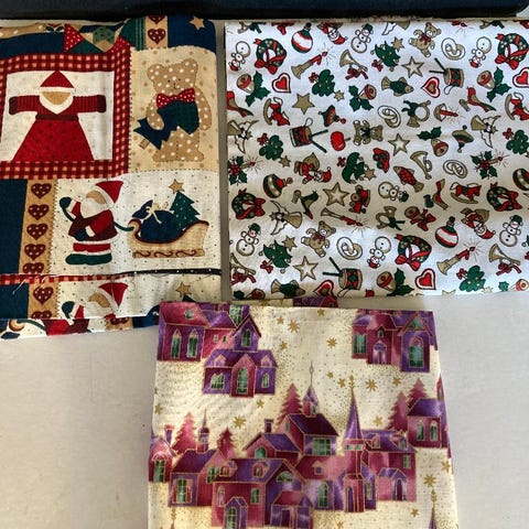 5 forskellige stykker julestof ca. 25 x 50 cm. Se billederne. Helt nye.