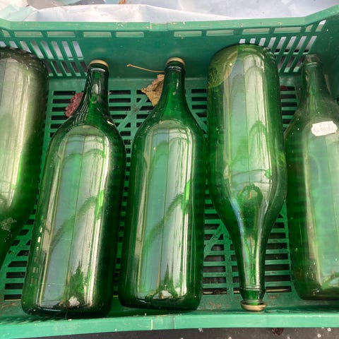 Selve flasken er ca. 33 cm høj. Ca. 35 cm lukket.