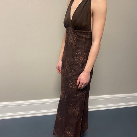 Fest kjole brun str s/m fra Sara Louise