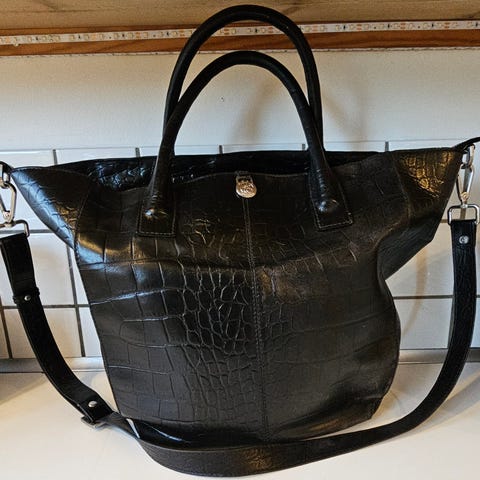 Lækker og meget rummelig taske med to store rum, et lille med lynlås og en nøglesnor.