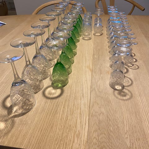 Vintage glas mærke Kirsten Pihl, 10 snapseglas, 15 ølglas, 7 likør, 13 portvin, 9 cognac,