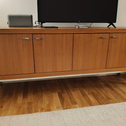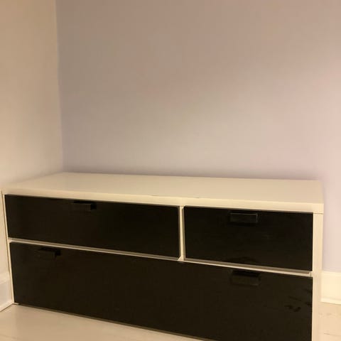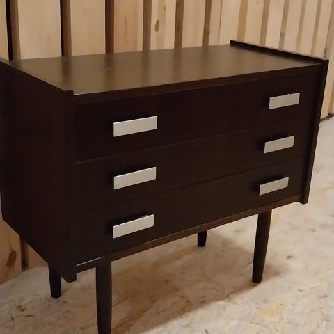 Flot skuffemøbel / kommode fra det nu lukkede Nova Møbler på Nørrebro. Møblet består af tre løse kasser med skuffer i massivt træ, der enten kan stilles lige oven på hinanden eller roteres. Jeg har selv brugt det som TV bord.