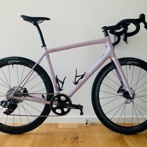Den kommer med fuld SRAM force 12 speed gruppe med sram quarq wattmåler, kranksæt med 50-35 klinge og en 10-30 kassette,