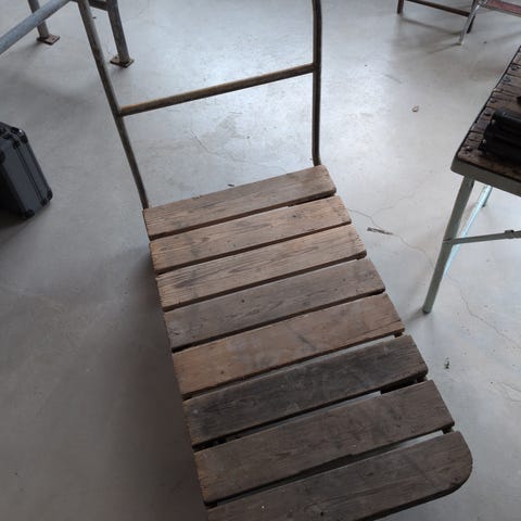 Super fed vogn/trolley med 4 kraftige hjul. Den har stået og kommer fra Skals Håndværkskole. Smuk patineret. Kraftigt stel.
