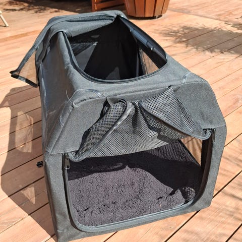 Fint bur til hunden. Ikke brugt mange gange. Virker som det skal - men skal have en våd klud. Gives bort hvis du henter det hos mig.