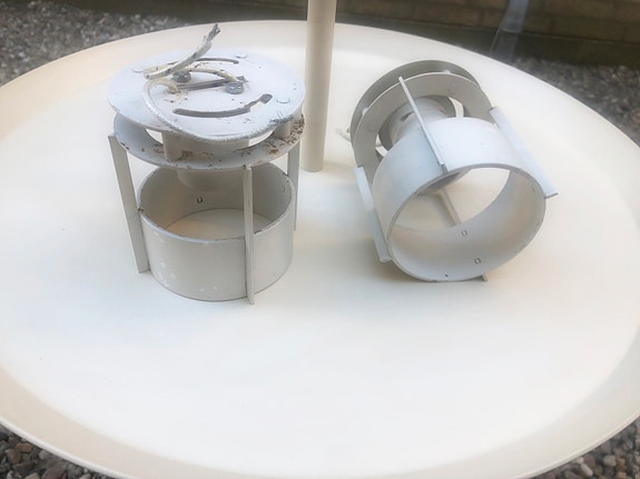 Indeni skærmen sidder den buede diffuser, der skjuler lyskilden og forhindrer at lyset blænder. Det gør at lampen giver et blødt og behageligt lys.