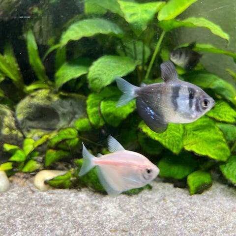 Sælger mine tre fine store Congotetra, har det super godt imellem 3 til 5 cm lang med flotte farver.