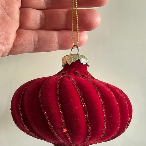 Håndlavede stjerneformede juleophæng med hvid og gulddetaljer. Fremstillet i stof med dekorative perler og tråd til ophængning. Velegnet til juletræspynt eller dekoration i hjemmet. Mål 8 x 8 cm