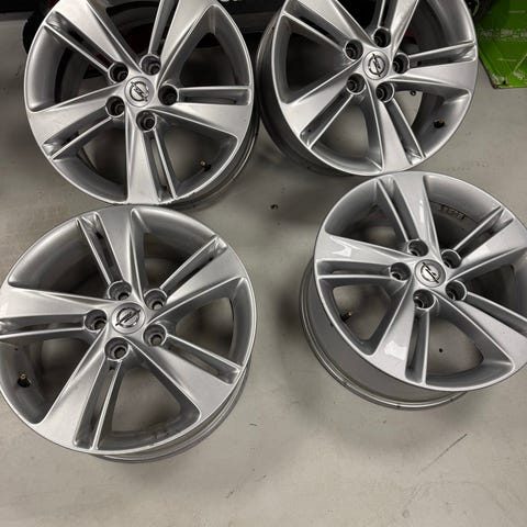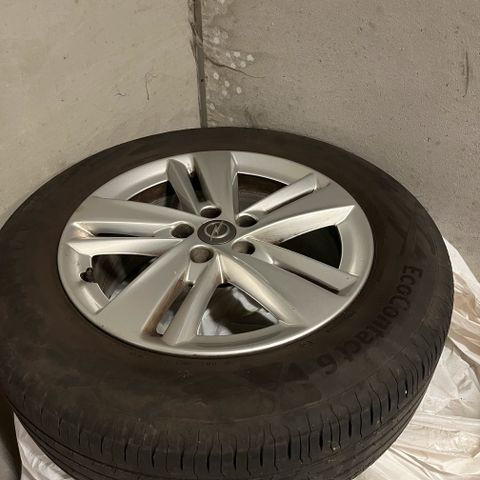 Michelin dæk med fælge med dimensionerne 225/50 R17. Dækkene er monteret på originale Opel aluminiumsfælge.