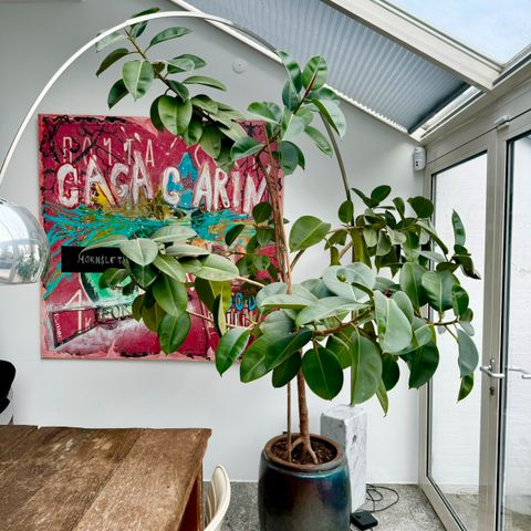 Ficus elastica (gummiplante) i virkelig flot Rabens apartment lerkrukke.
