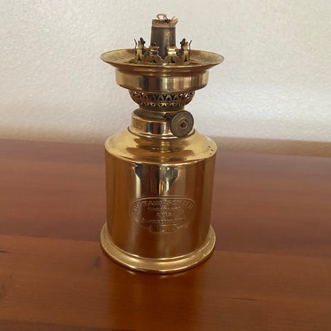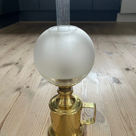 Olielampe er i messing,