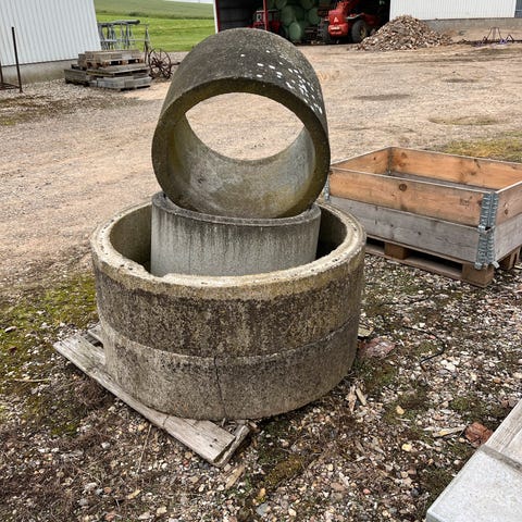 Næsten nye opføringsrør i beton kegle, med indvendig diameter på ca 35.