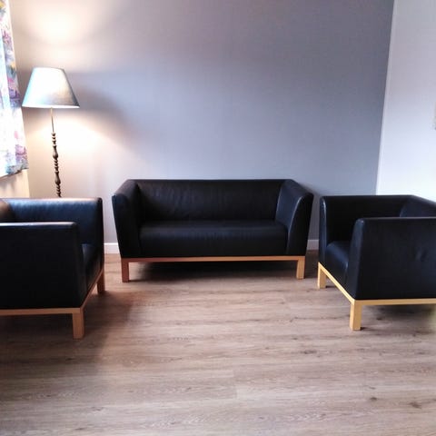 Jørgen Bækmark. Modul sofa/stol. 4 stolemoduler og 4 armlænmoduler. Sort orginal læder.