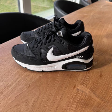 Nike Air Max sneakers i størrelse 42. Skoene er beige med sort Nike-logo og leopardmønster på siderne. Designet til sportstypen 'Andet'.
