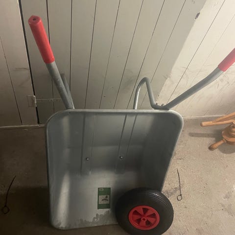 Velegnet til transport af haveaffald og materialer. Ryom Havekærre/trillebør Pro 125 L m/kop/redskabshold. Sort plastkasse og pulverlakeret stel. Store luftgummihjul der sikrer let kørsel med last i kassen. Kun brugt et par gange og fremstår som helt ny. Har været opbevaret indendørs.