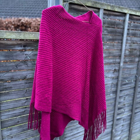 Også til salg samme poncho i en flot fuchsia/pink farve - se separat annonce.