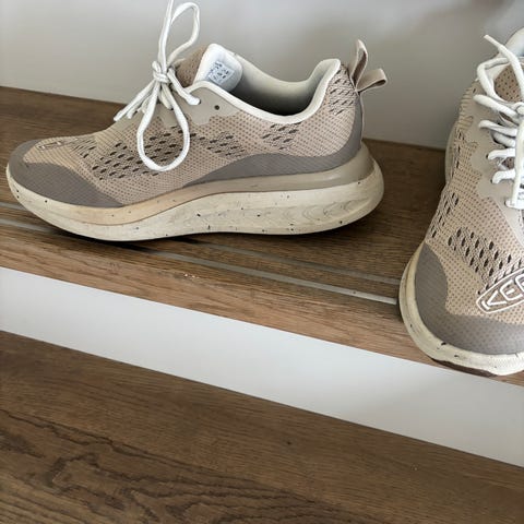Kean Sneakers i størrelse 37,5, 38 og39,5 lavet af brun ruskind. Skoene har en hvid gummisål med mønster for bedre greb. Designet til kvinder. Pris pr. par.