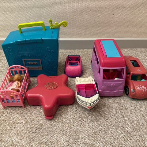 Polly Pocket cirkusvogn med hest, hund og dukke.