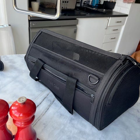 Sørg for at tjekke dit flyselskabs krav til samlet størrelse og vægt (kæledyr + transporttaske) inden rejsen, da specifikationerne varierer fra selskab til selskab.