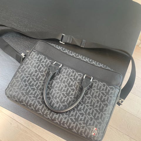 Tommy Hilfiger computer taske til PC, papirer mm. Kan også bruges som kamerataske. Unisex.. Tasken har flere lynlåslommer og håndtag til nem transport. Indvendigt er tasken foret med lyst blødt materiale i fleece og indeholder adskillige rum til organisering af ejendele, pc og ledninger.