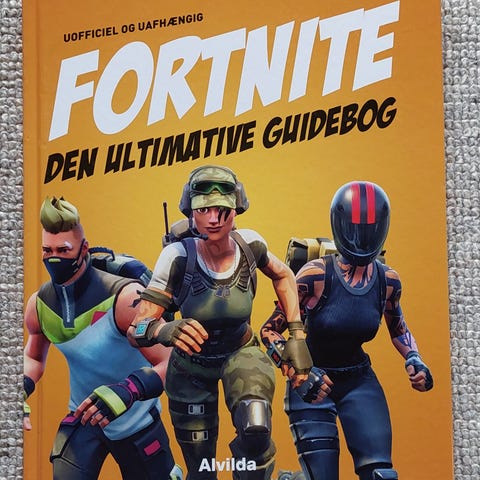 Fortnite Den Ultimative Guidebog er en bog på dansk, der indeholder detaljerede vejledninger og strategier til spillet Fortnite. Bogen dækker emner som våbenmestring, afstandsangreb, opdateringer som B.R.U.T.E. og Season X, samt kreative spiltilstande. Den indeholder illustrationer og beskrivelser af spillets elementer og funktioner.