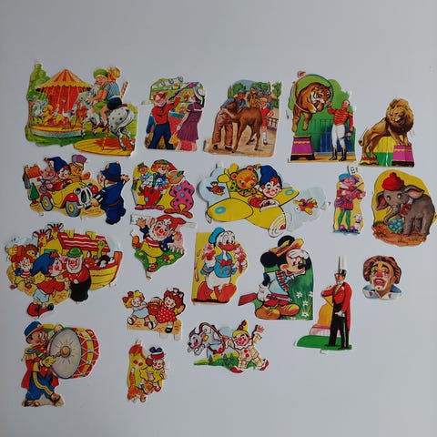 14 stk. gamle glansbilleder. ( udklædte musikalske dyr ) ca. 11-12 cm. høje. Ialt for dem alle 25,-