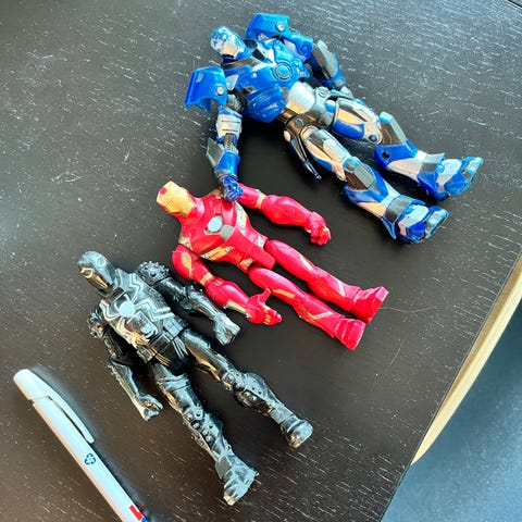 Marvel actionfigurer bestående af seks forskellige superhelte, herunder Hulk, Iron Man, Captain America, Superman og Batman. Figurerne varierer i størrelse og farve, lavet af plastmateriale med bevægelige led. Velegnet til samling eller leg.