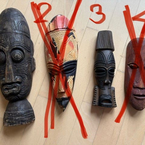 Unikt Afrikansk håndskåret træmasker. Høj 20.cm. bred 10.cm. Høj 21.cm. bred 7.cm. Sælges for 150kr.