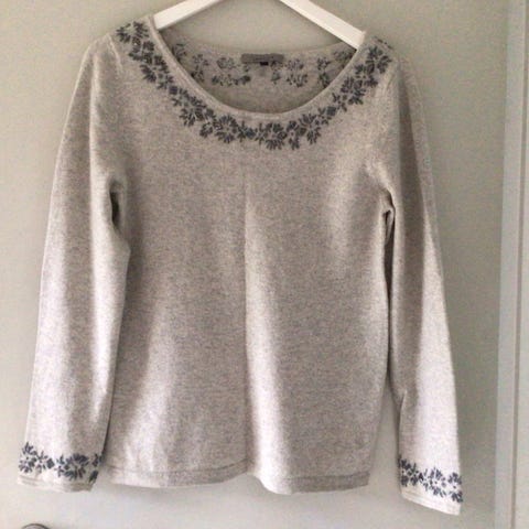 Bluse, Jaeger, str. 42, Grå og Rosa, Merino uld. Vasket forkert, så passer nok str M.