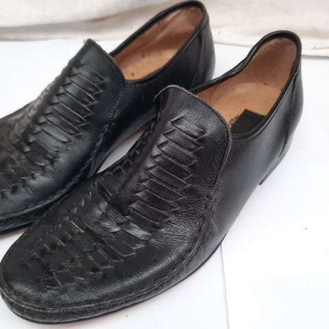 Andet, Panther sko, str. 41, Toppen af poppen i sko: smukke, danske, uopdrivelige, håndsyede Panther-sko, som i dag viille ligge i 15.000 kronersklassen. Simon Spies brugte dem.