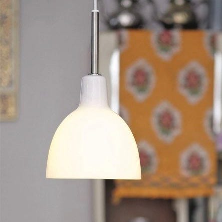 Designer-lampe i mundblæst hvidt opalt glas fra Louis Poulsen. To stk. Købes som udgangspunkt samlet.